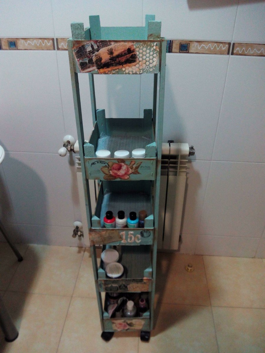 Hola me encanta este nuevo espacio de facilísimo, después de un tiempo sin estar con vosotros, os traigo una idea que creo que ha quedado muy resultona, de unas cuantas cajas de fresas, he logrado hacer un carrito estantería estilo vintas, y con ruedas incluidas.