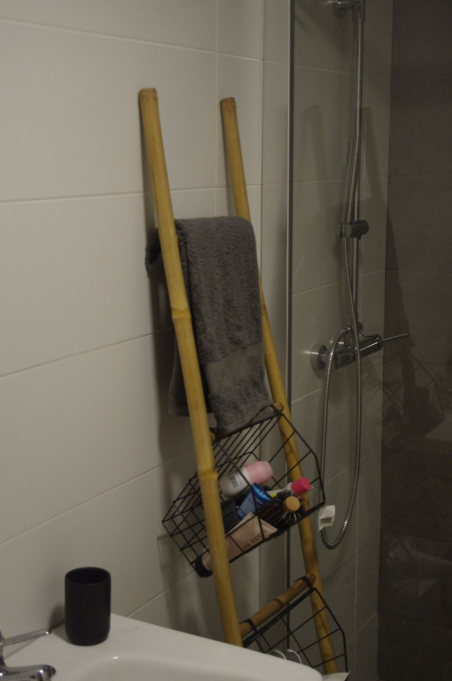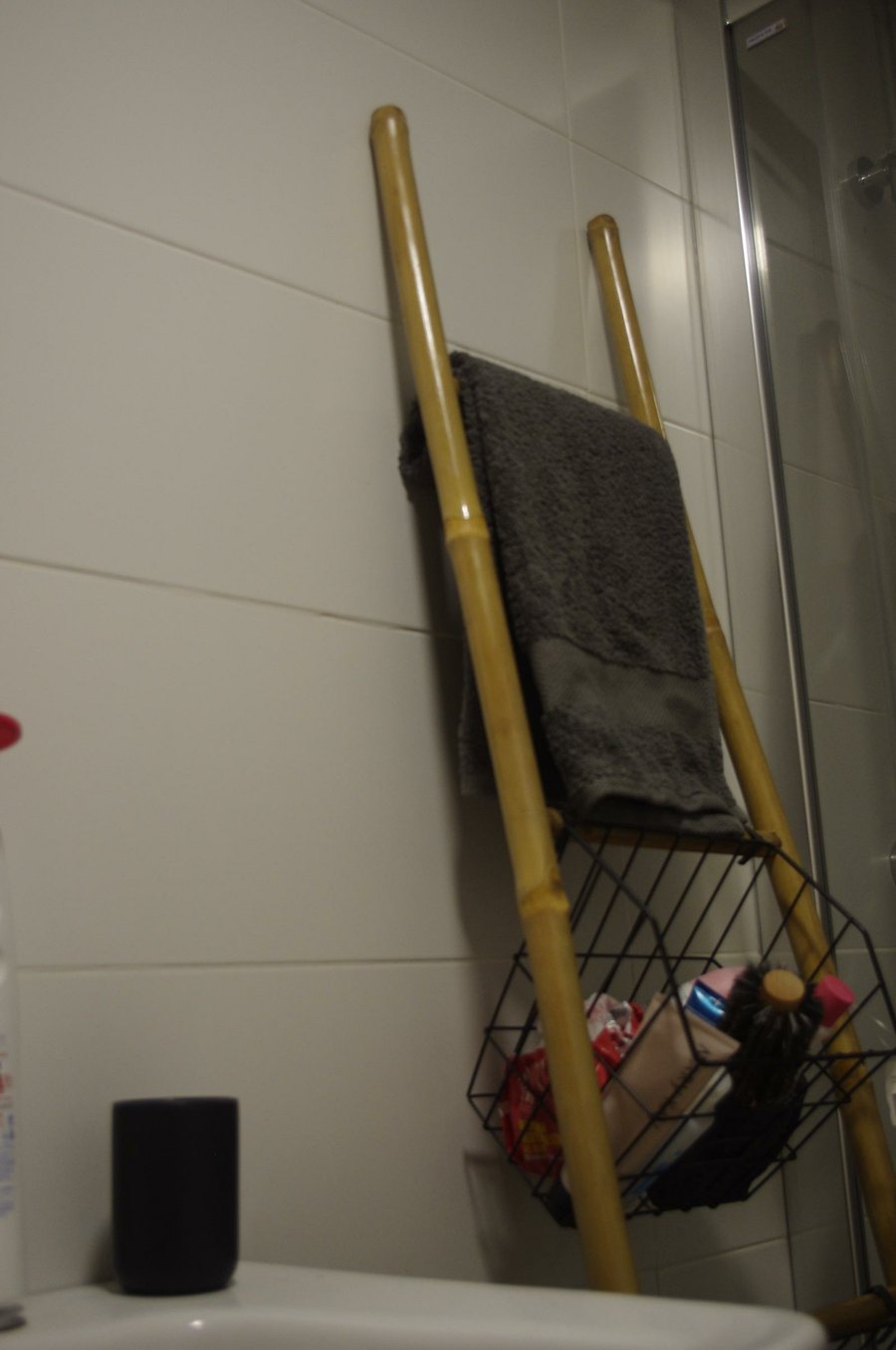 No necesitamos mucho almacenamiento, y nos gustan las cosas prácticas por si nos cansamos pronto de ellas. Así que esta escalera nos permite tener a mano lo indispensable.
