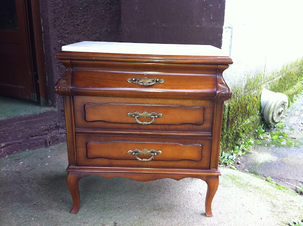 Esta mesita de noche nos encantó nada más verla, a pesar de que la piedra de mármol de un inmaculado color blanco, no nos gustaba demasiado (ó nada).El caso es que, ya habíamos trabajado anteriormente, con alguna mesa rematada con mármol y la solución que habíamos adoptado era...quitar el mármol. El problema que tenía este mueble es que, si retirábamos el mármol, la superficie de la mesita se qued ...