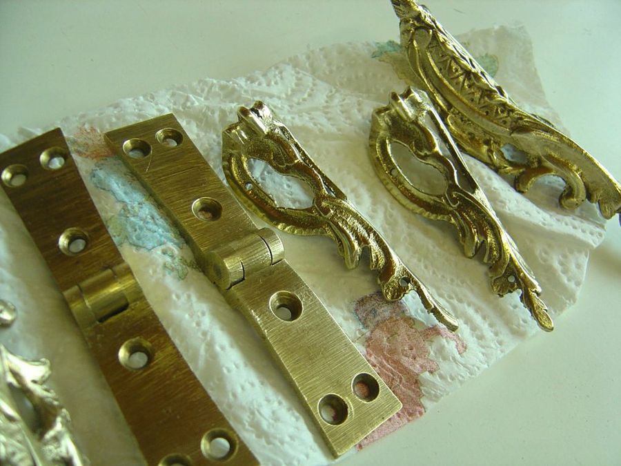 Los herrajes ya pulidos y barnizados ofrecen un aspecto inmejorable. Yenai ha utilizado una pulidora, después de una primera limpieza manual.