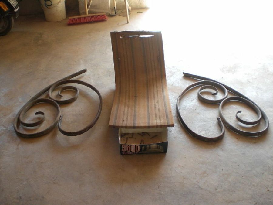 "Aquí vemos las partes laterales del balancín ya lijadas, me he esmerado un poco más con respecto al respaldo". Seguidamente, nuestro amigo fortalece con unos clavos los tramos dañados, y aplica masilla reparadora.