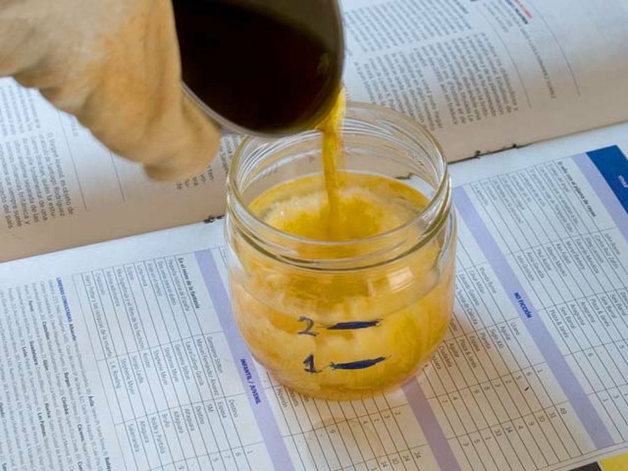 En esa proporción de ingredientes, el producto tiene la consistencia de una pomada, y lo aplicaremos con facilidad mediante una muñequilla de algodón, que no suelte pelo.