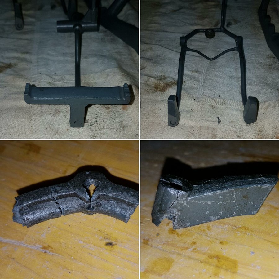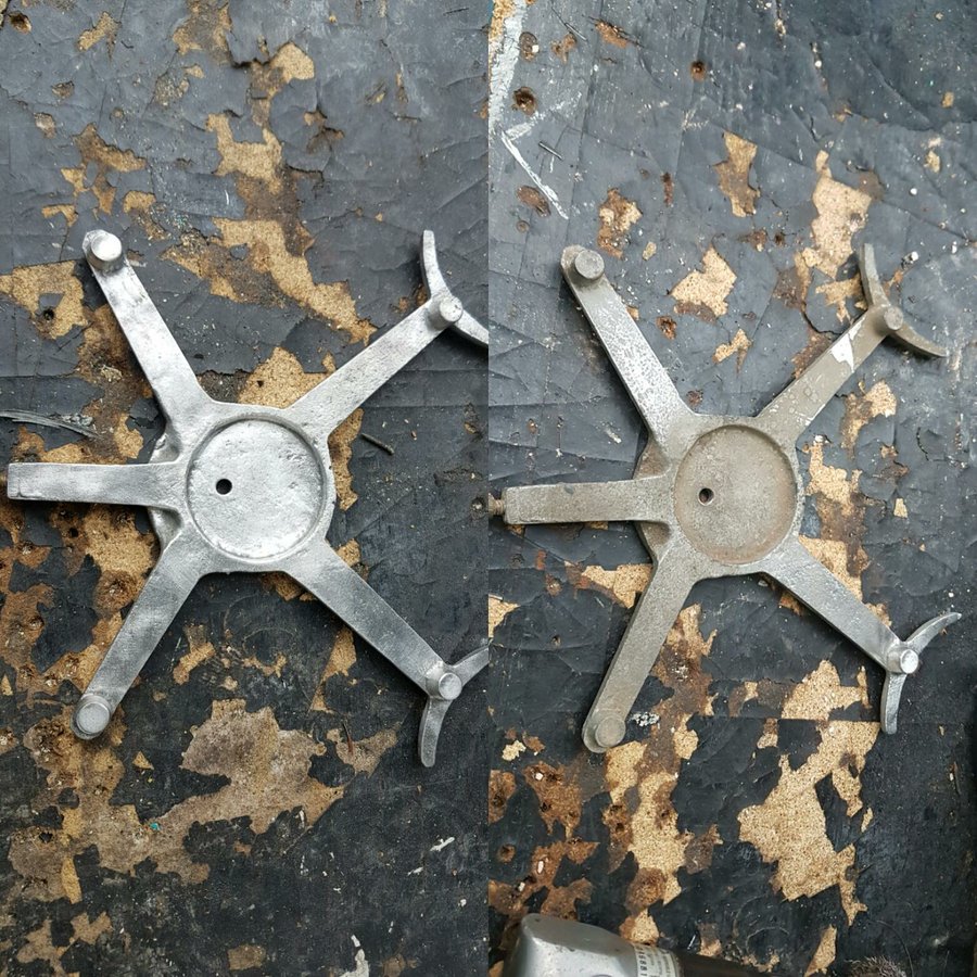 Tambien el antes y despues del soporte del plato. Le di con el cepillo de alambre y el taladro.