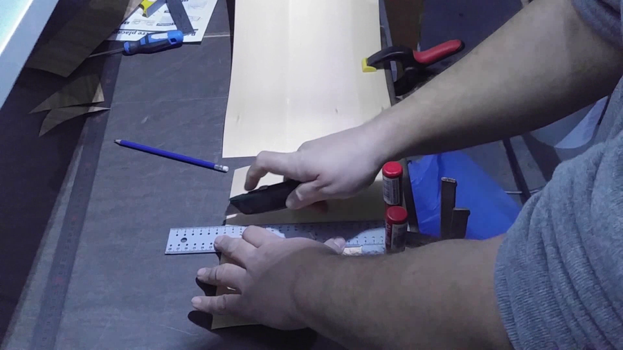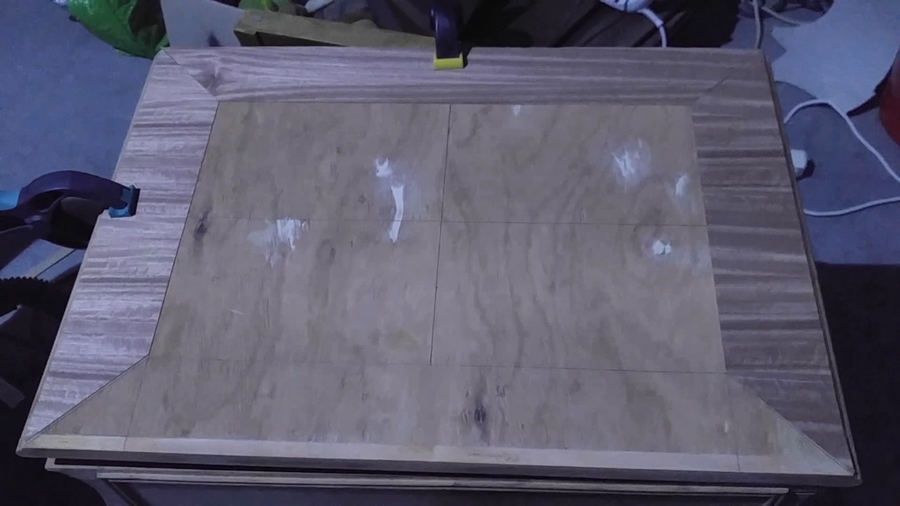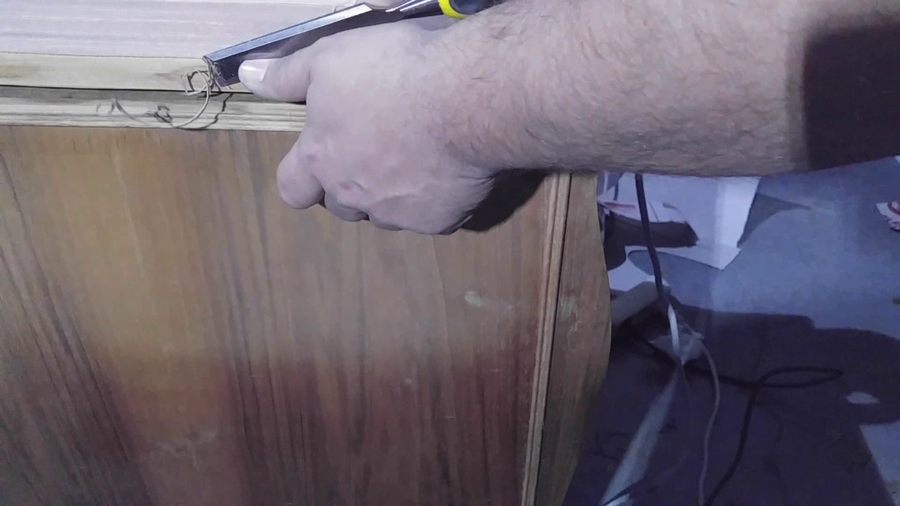 Con un formón o con una cuchilla vas recortando el exceso de la chapa que sobresalga por los bordes.