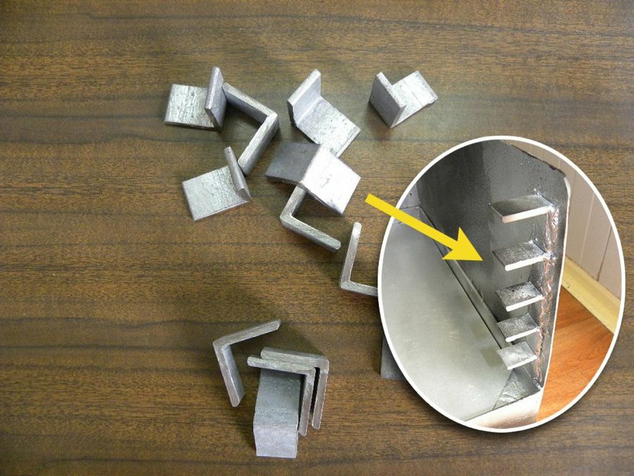 Otro ángulo, de menor tamaño, sirvió para cortar las pestañas donde apoyaría la parrilla. Hay varios niveles, de esa manera la parrilla puede colocarse a diferentes alturas.