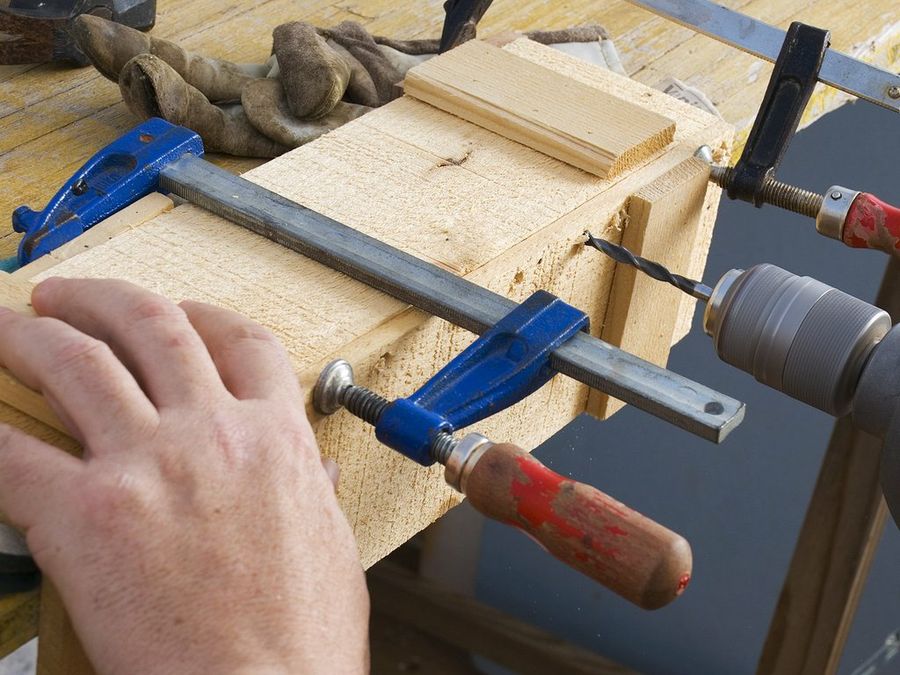 Hacemos los taladros con la broca del 6, cuidadosamente, ya que va algo justa para el grosor de las tablas, y vertemos cola en los agujeros.