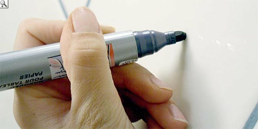Señalamos el punto del azulejo donde queremos hacer el agujero, después de haber medido bien.