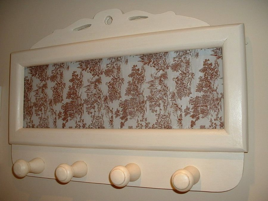 Arduran ha combinado madera y tela en un perchero muy cálido y ornamental. La idea es muy propicia a un regalo personal, empleando los colores preferidos de la otra persona, o una tela con motivos que le agraden especialmente. Hay miles de telas diferentes, y sin mucho esfuerzo encontraremos el estampado ideal para cualquier afición.