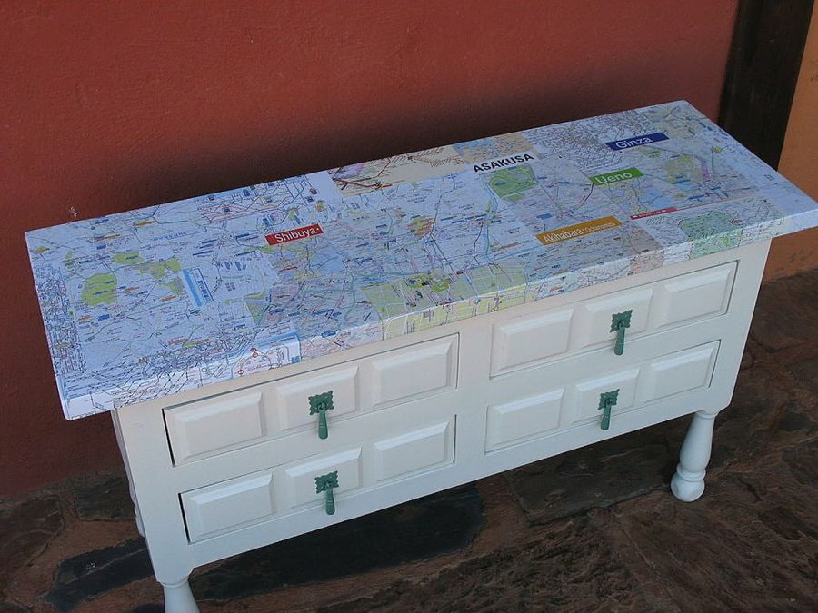 Lego hizo este bello tuneo con un aparador, rematando la tapa con el plano del metro de Tokio, ciudad que ella recuerda con especial cariño. Es un diseño muy cómplice y original para recordar un viaje especialmente romántico.