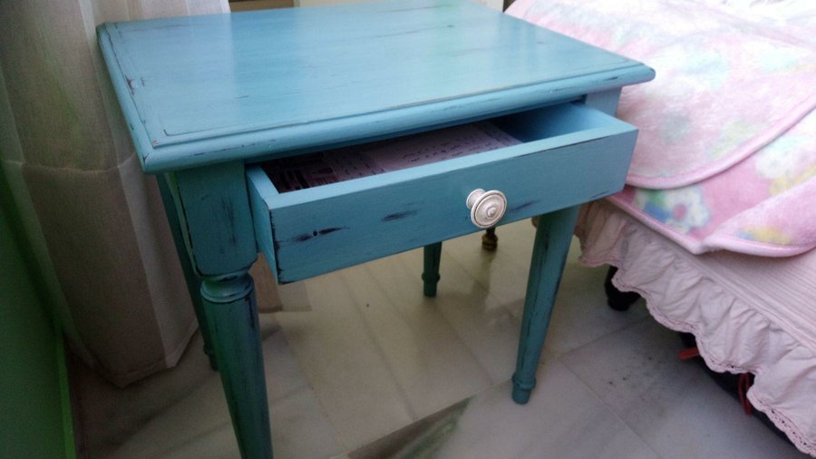 En esta ocasión estaba buscando una mesita para mi dormitorio. Me puse a buscar por páginas de segunda mano y encontré una ganga. Una mesita muy sencilla, pero por 3€. La tenía una señora con la idea de darle un lavado de cara ella misma, pero al no encontrar el momento llevaba meses en el trastero y estaba algo arañada y golpeada, pero a mí eso no me importaba, así que se vino conmigo.