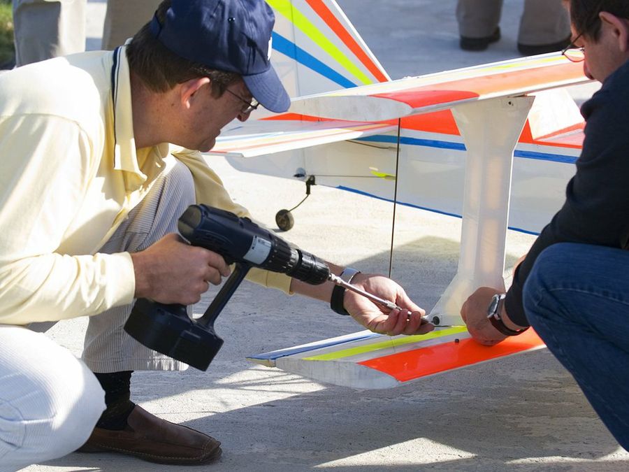 El atornillador eléctrico se revela como el ayudante ideal para numerosos ajustes, y su vigoroso par de giro es imprescindible sobre todo en los aviones de gran tamaño. Las modernas baterías de litio, con su duración y su potencia, son un talismán para los aeromodelistas.