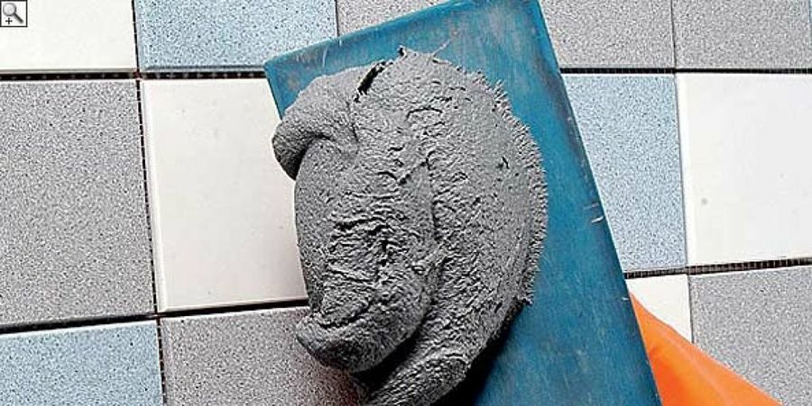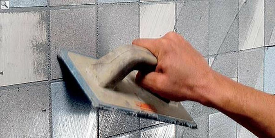 Hazlo en diagonal con el filo de la llana de goma. Da pasadas, hasta que estén todas las juntas llenas.