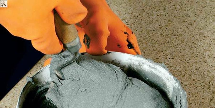 Mezcla la junta cementosa del color elegido según las recomendaciones del fabricante en los envases, hasta que quede una pasta homogénea.