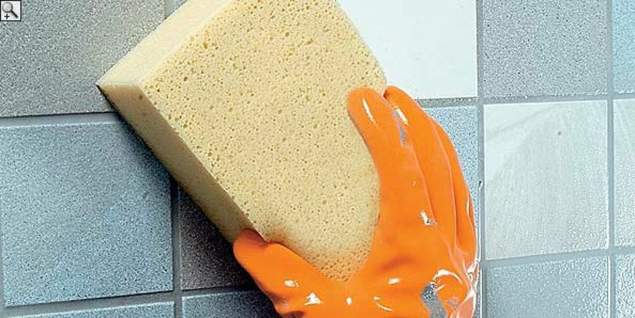 Retira el exceso de material presionando con el filo de la llana de goma. Deja secar hasta que las juntas estén firmes y la pasta se vuelva opaca. Con un estropajo frota levemente en círculos hasta retirar esa película opaca.