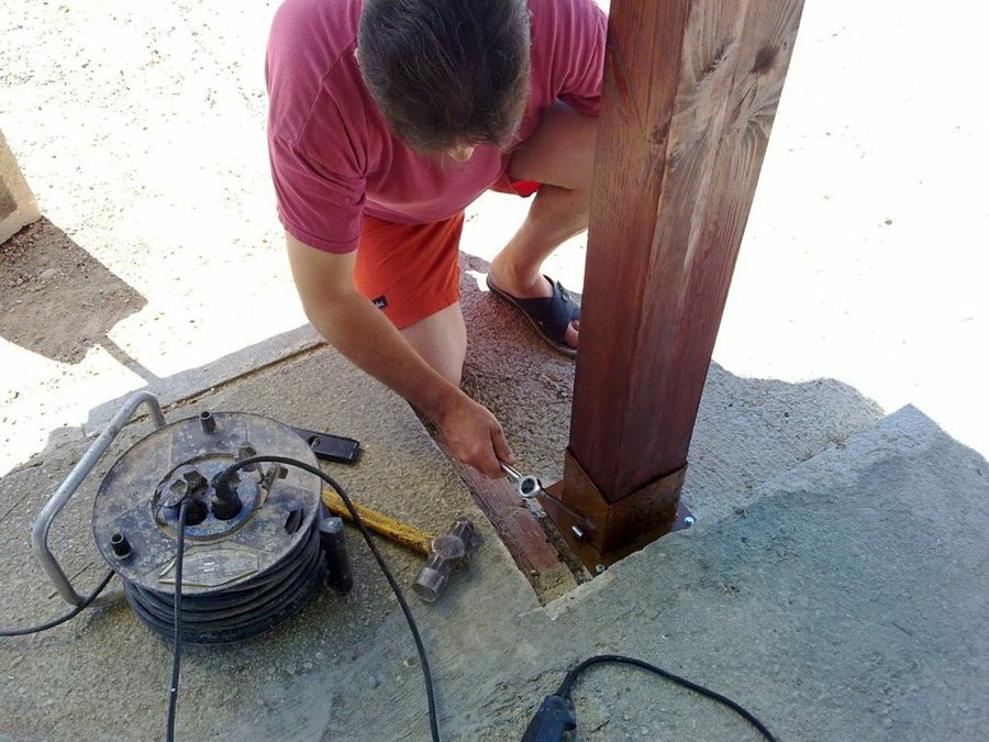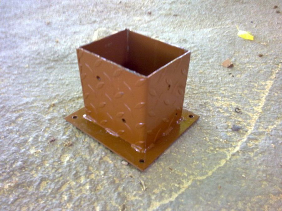 "Paso a mostrar unas cuantas fotos de lo que hicimos el sábado entre birra y birra, el herrero llegó con los anclajes y los copetes piramidales y pudimos avanzar y desarrollar bastante el trabajo. Aquí tenemos el poste con zapatos y sombrero".