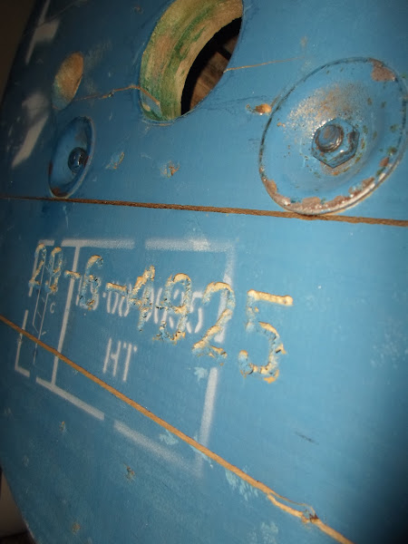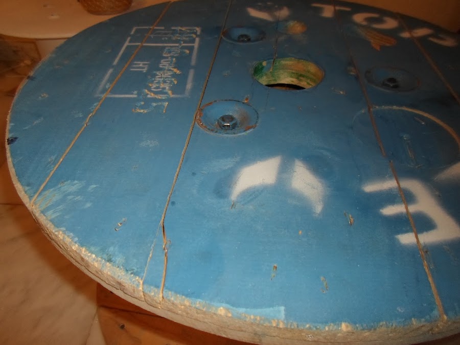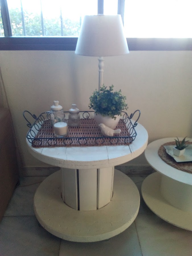 Aquí os presento otra bobina, mucho más rustica que la anterior. Tengo suerte que en el hospital donde trabajo están haciendo obras, y apareció esta bobina. He hecho un conjunto a dos alturas con las dos bobinas, y ha quedado precioso.