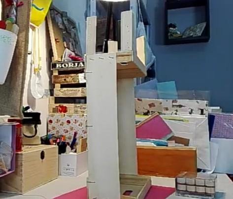 Y el lateral de la caja grande lo pondremos en la parte inferior de la estantería para formar un pequeño cajón.