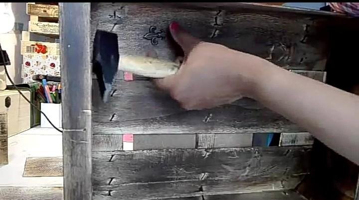 Una vez pintado y secado pegaremos a la caja nuestros colgadores, yo utilice clavos muy pequeños pero también se pueden pegar con pegamento de fijación rápida y duradero.