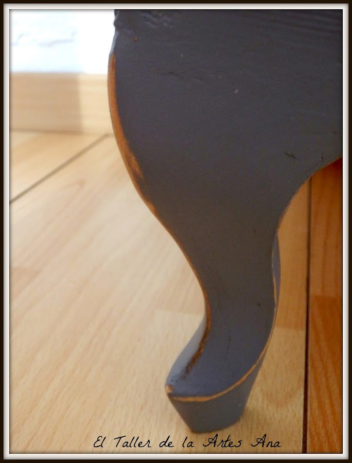 He decapado los bordes y aristas de la mesilla para envejecerla pero no demasiado.