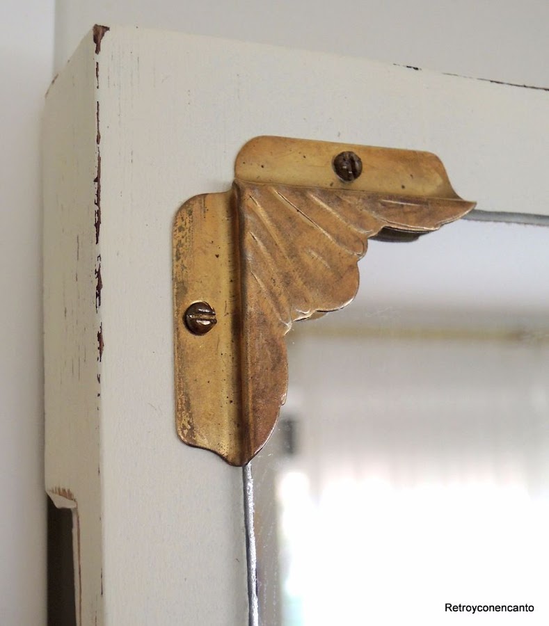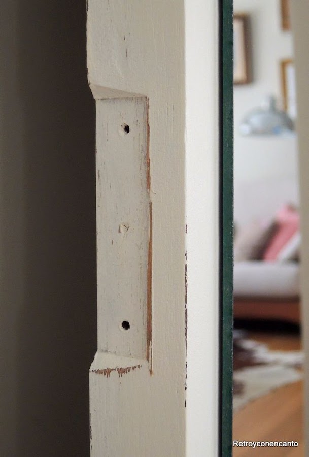 Tras la pintura, decapamos la puerta con lija ligeramente. Limpiamos someramente los detalles metálicos, pues nos gusta el aspecto desgastado que presentan.