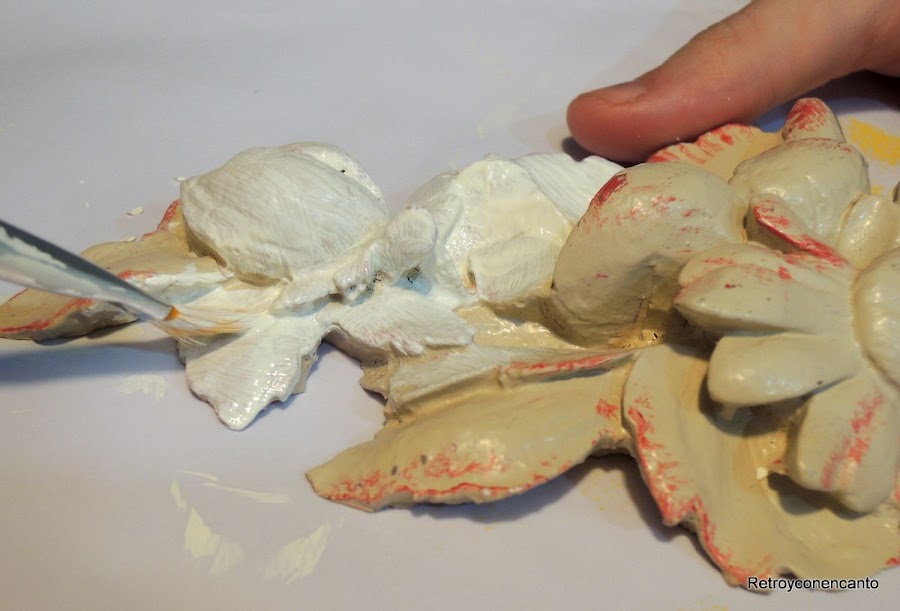 Teníamos esta moldura de resina que no usamos en otro trabajo. La pintamos de nuevo...