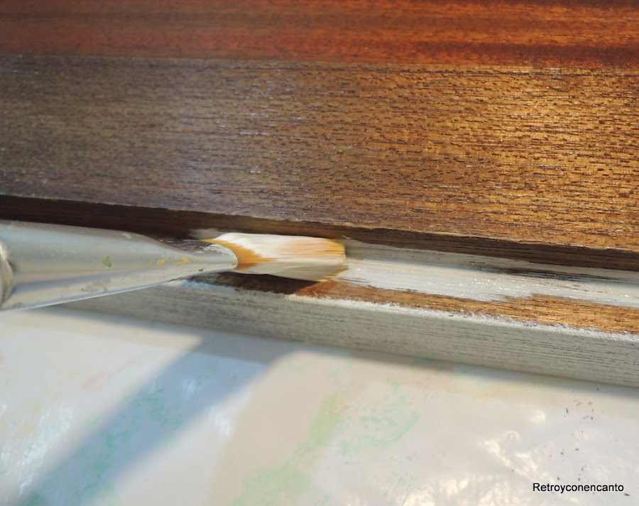 ..., y pintamos directamente con pintura a la tiza en blanco roto. Para este trabajo la tiza sí resultaba perfecta, pues no teníamos intención de lijar y, sin imprimación previa, la pintura plástica no habría agarrado tan bien.