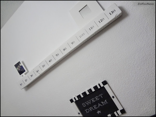 Quería decorarla con números, y se me ocurrió hacer una especie de regla a lo grande, así que fui separando para luego poner los números cada 10 cm.