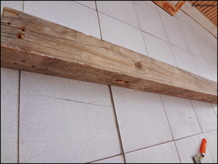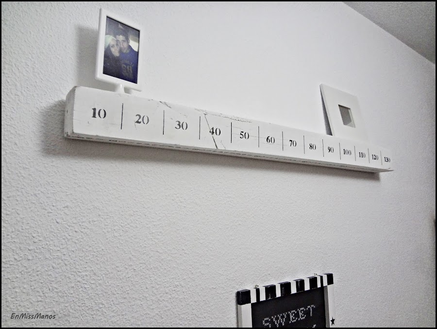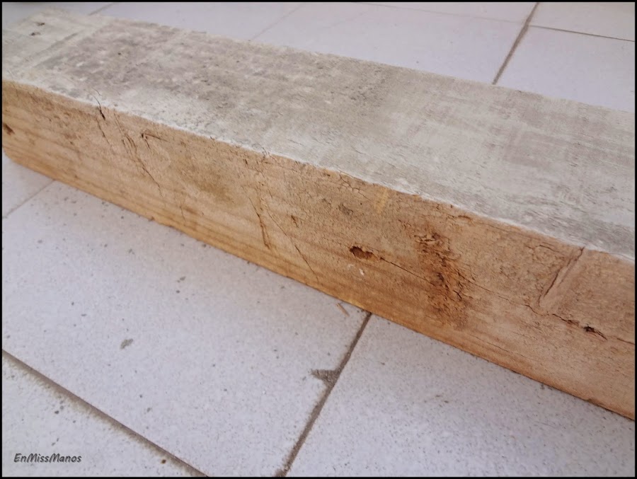 Pues bien, desde hace tiempo tenía este listón de madera bien grandecito sin saber para qué usarlo, hasta que se me ocurrió usarlo como estante!