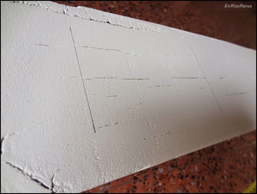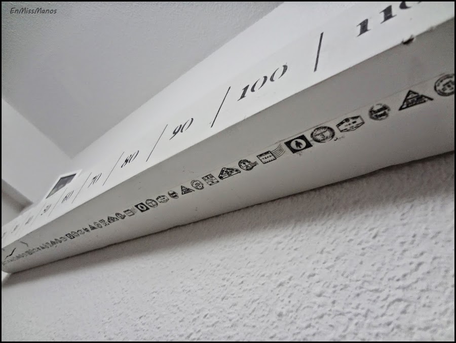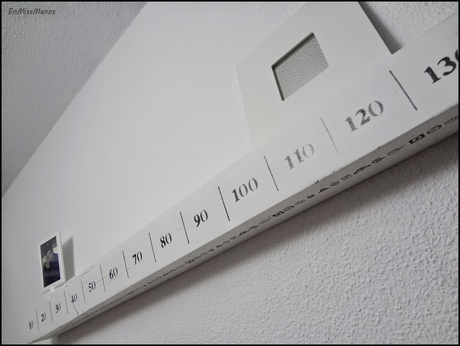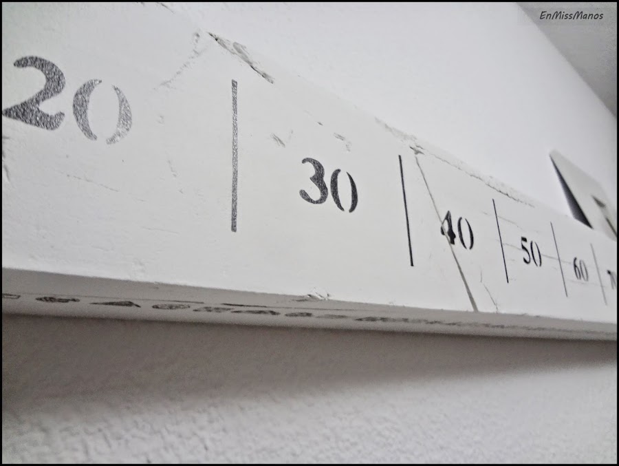 Quería decorarla con números, y se me ocurrió hacer una especie de regla a lo grande, así que fui separando para luego poner los números cada 10 cm.