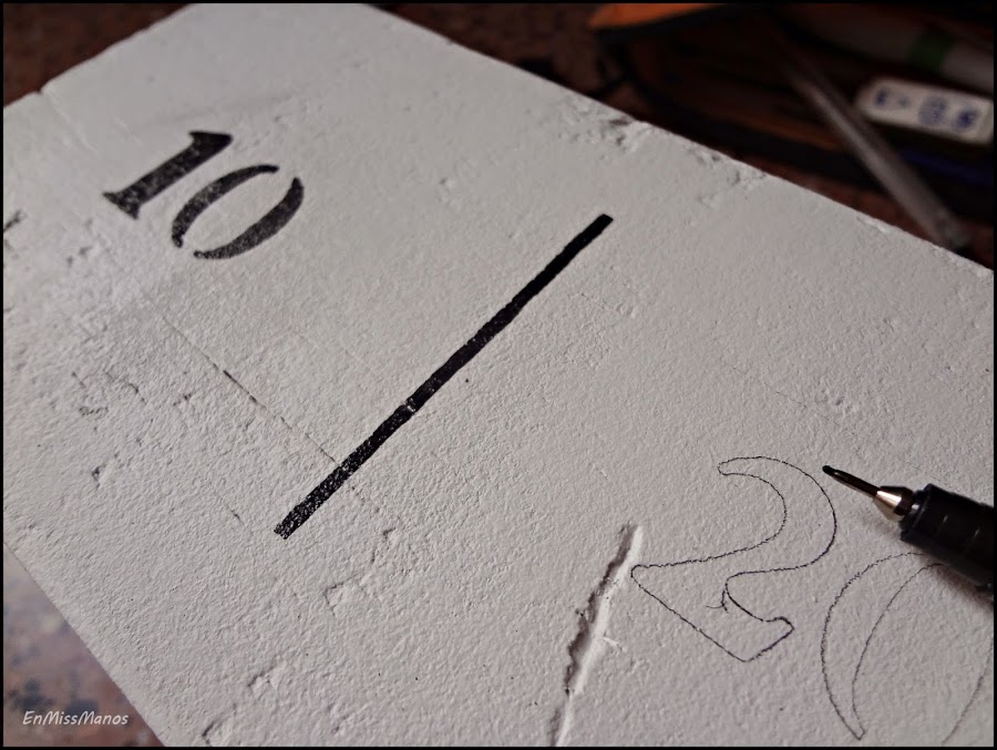 Con una plantilla que tenía con números y letras, fui dibujando los números, encajaron perfectos!