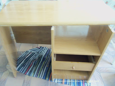 este tipo de muebles vienen con tornillos así que le quite el sobre y un lateral para poder trabajar mas comoda