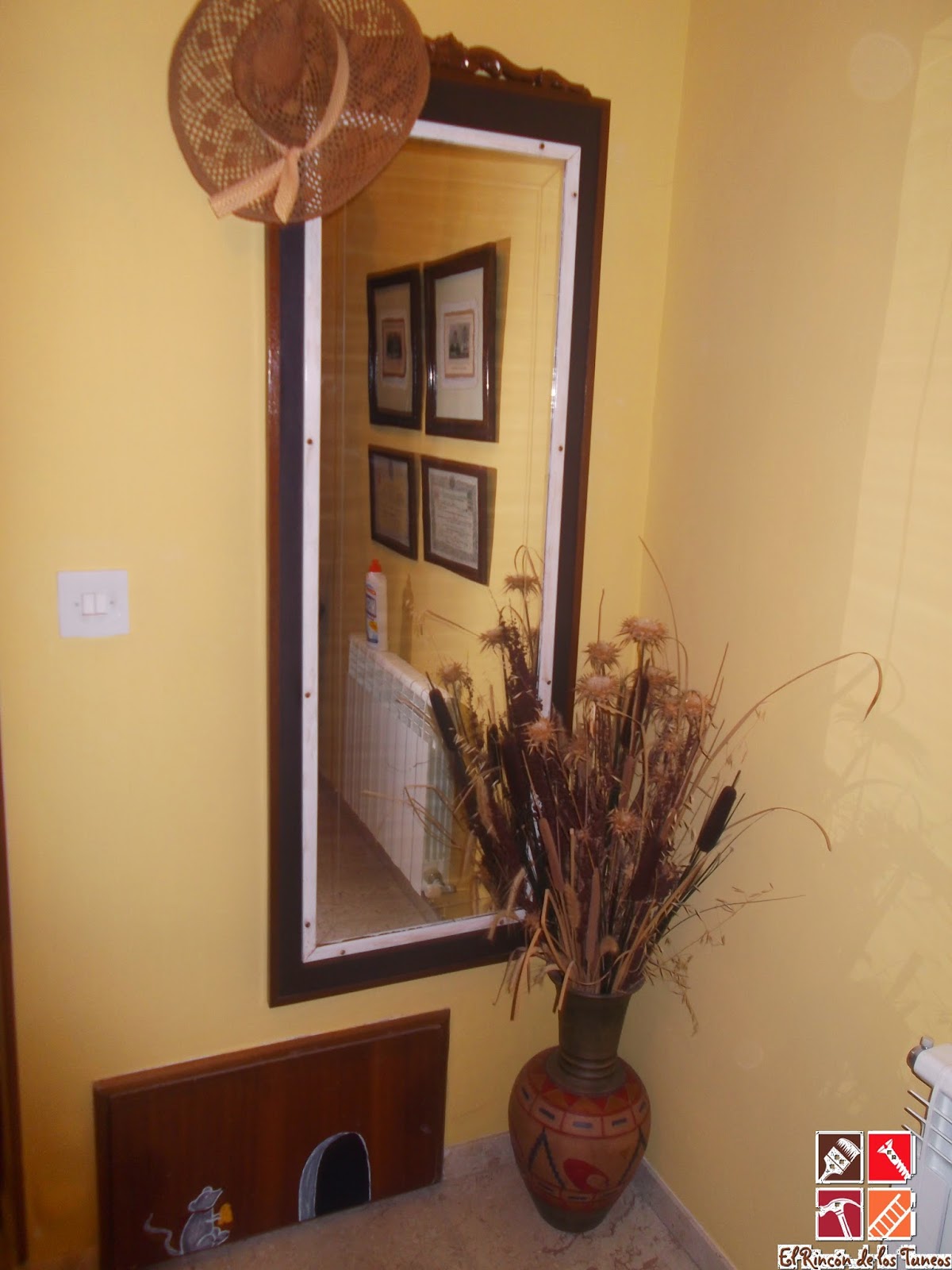 Debajo donde coloqué el espejo hay una puerta que esconde las llaves de paso del agua y para darle un aire distinto y más gracioso, hice un pequeño dibujo de un ratón.