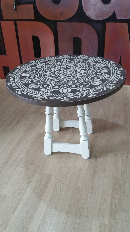 Ya tengo terminada la mandala, ya sólo me queda lijarla un poco y darle una cera protectora a toda la mesa.
