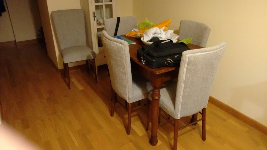 Nos regalaron cinco sillas que daban ganas de tirar a la basura... pero a nuestro hijo le hacían falta para su piso de Vigo.
