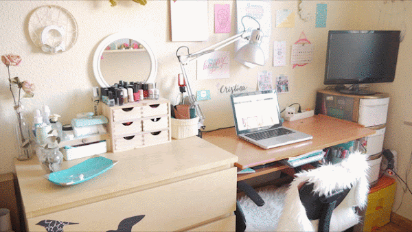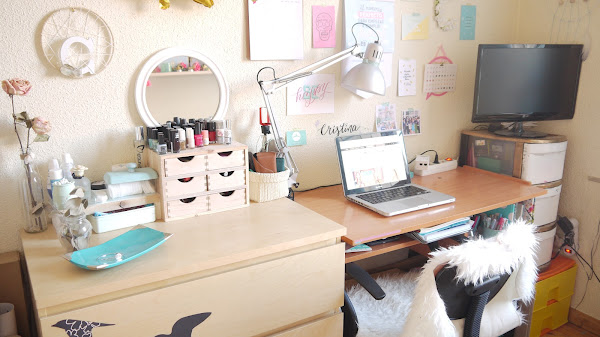 hoy os quiero enseñar el cambio radical que le he dado a mi escritorio. Os voy a poner en situación: muchas ya sabéis que estuve algunos años en un colegio mayor antes de mudarme a un piso. En el colegio tenía algunos muebles, pero necesité comprar alguno más para almacenaje, principalmente cajoneras. Por aquella época mi bolsillo solo me permitía muebles de chinos, hasta Ikea se me hacía caro jajaja Así que ese fue el momento en el que me hice con unas cajoneras de plástico más bien feuchis y que luego intenté solucionar pintándolas con spray.