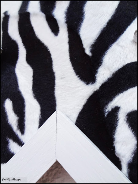 Y su sitio elegido al final ha sido el suelo!! Nada de estante en la habitación, jaja, quedaba muy grande y me daba un poco de yuyu tener una cruz encima de la cama, por mucho que fuera con estampado de cebra...así que al comedor a ido a parar!