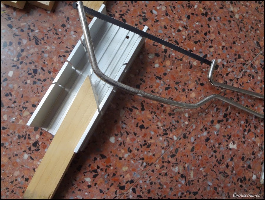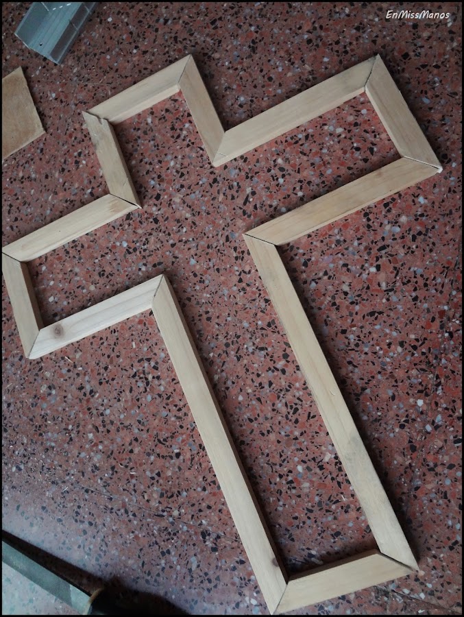 Una vez hecha la cruz con las maderas fui haciendo el marco con los listones hasta tener todo el alrededor.