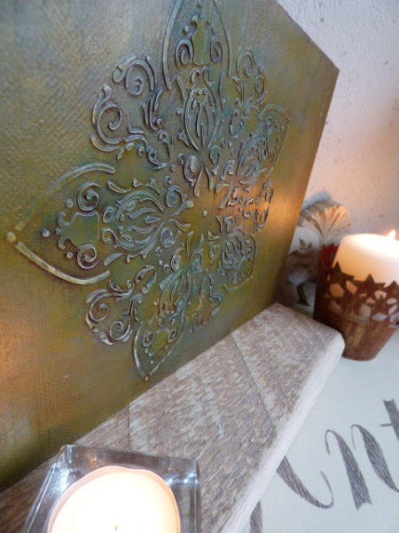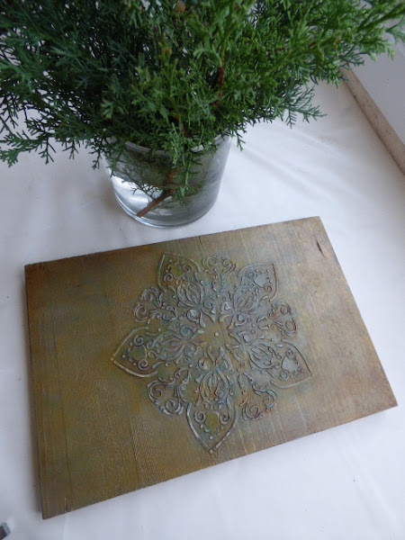 Nada del otro mundo, un cuadrito con relieve con una plantilla nueva al que he querido darle un aspecto metalizado...