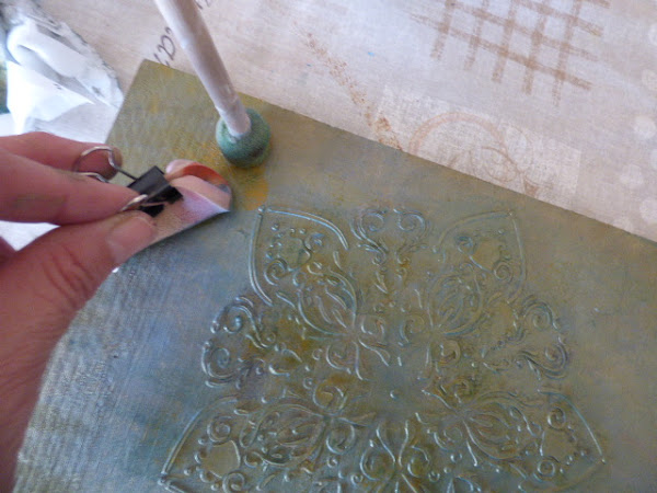 Una buena capa de pasta de relieve......yo la extiendo con la paletina de silicona, de las que usamos en la cocina.....