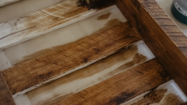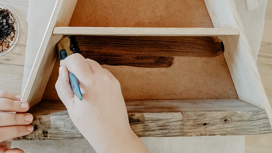 Para darle color podéis utilizar pintura de cualquier color o tinte para madera. Nosotros en este caso hemos elegido un tinte color marrón.