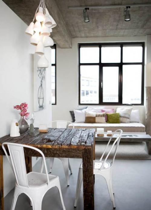 Personalmente, lo que mas me gusta del estilo industrial es su pasión por los muebles reciclados, desvencijados y raídos y sus maderas naturales, cuanto mas bastas mejor.