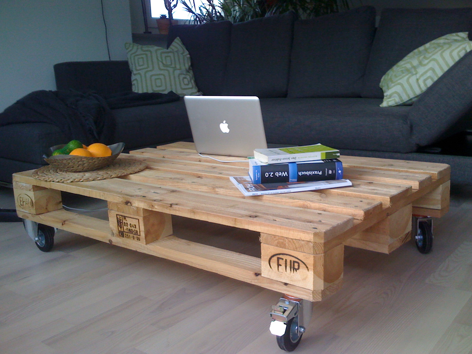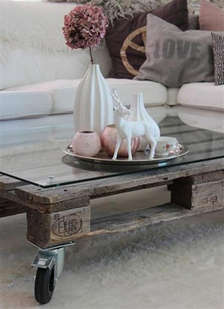 ¿Qué pasa si no queremos o no podemos gastarnos el dinero para comprar una? Pues sin problemas, coges un palé, le añades 4 ruedas de goma de 4 euros cada una y ya tienes tu mesa de centro de estilo industrial, ahora solo tienes que decorarla a tu gusto: barnízala, tíñela, ponle un vidrio encima... tú decides.
