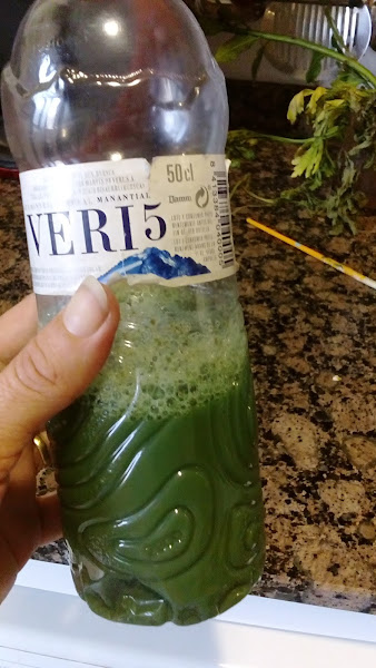 Aquí el proceso llevaba como una semana, y me dí cuenta de que cuanta mas sal le añadía, más surgía ese bonito color verde, así que seguí añaniendo más y más...
