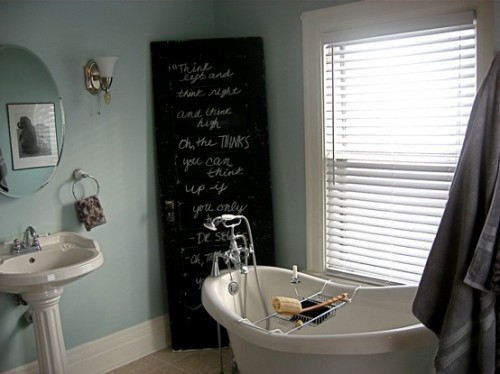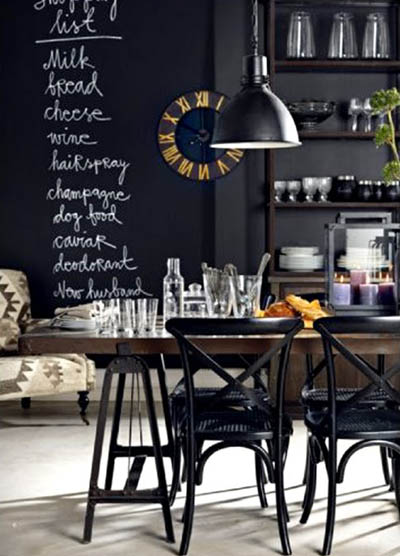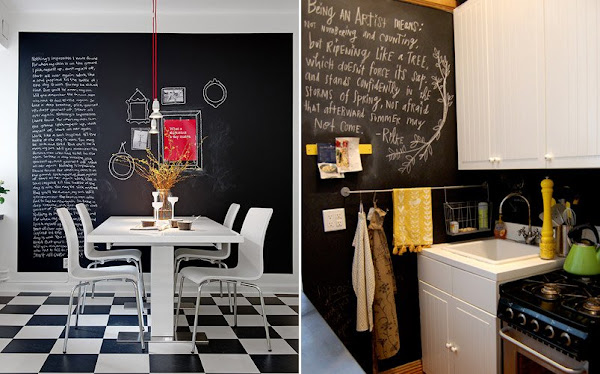 Cuando me fui decidí llevarme algunas láminas que me regalaron para hacer algún trabajo, aunque aún no se muy bien en que las voy a utilizar, pueden servir desde bandejas para comer sushi por ejemplo, hasta salvamanteles originales para una comida en familia, además las puedes utilizar con tizas y usar en la cocina para apuntar la compra por ejemplo. Las posibilidades son infinitas. Además de la pizarra como piedra se puede utilizar alguna antigua pizarra de colegio por ejemplo para ponerla como cuadro y escribir algún mensaje. Además existe una pintura especial que se puede aplicar en cualquier pared convirtiéndola en una pizarra gigante, así que como digo, las opciones son infinitas, de momento os dejo algunas fotos para que os inspiréis, como de costumbre: