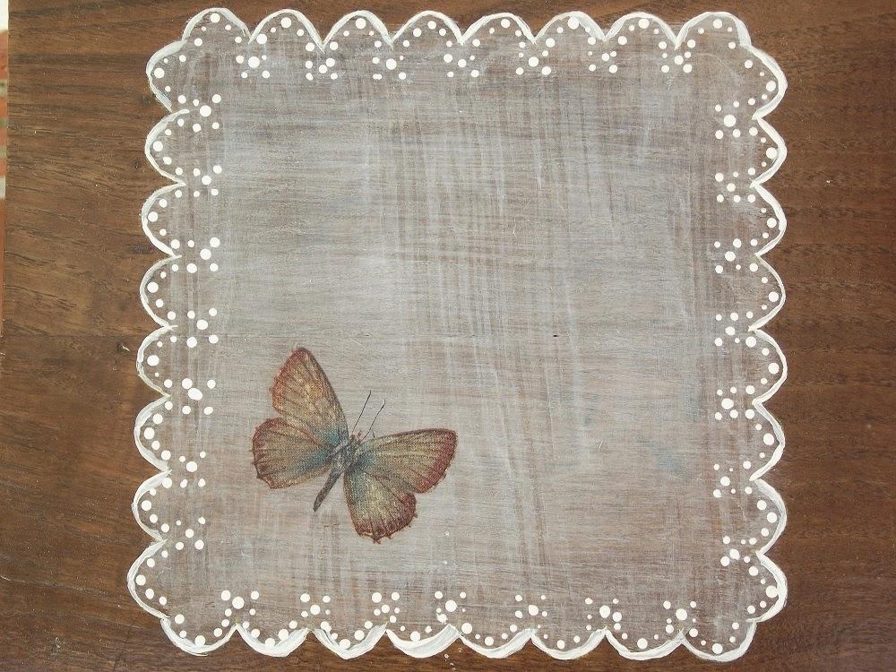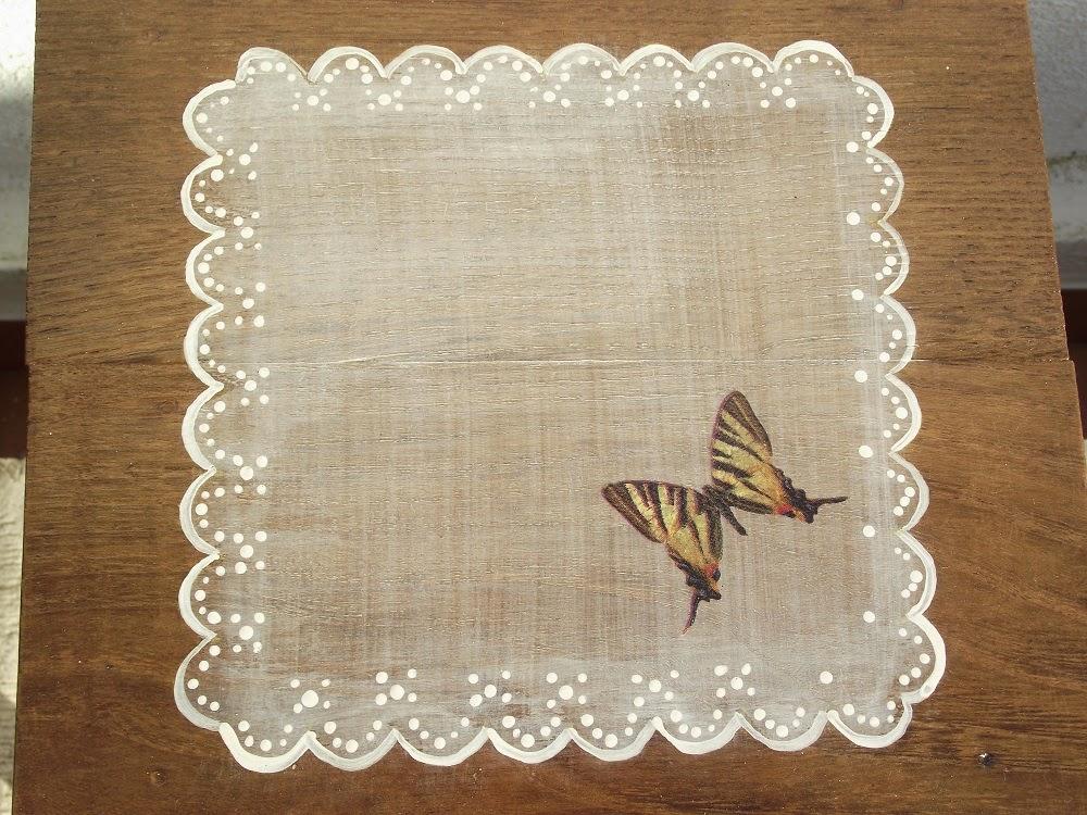 Para darle un pelín de gracia le puse las dos mariposas, con la técnica del decoupage con servilletas.