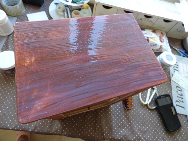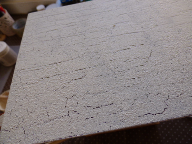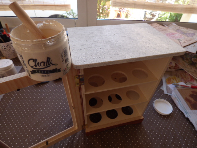 Empecé dando craquelador a la parte superior. Como siempre, dejar secar del todo.....