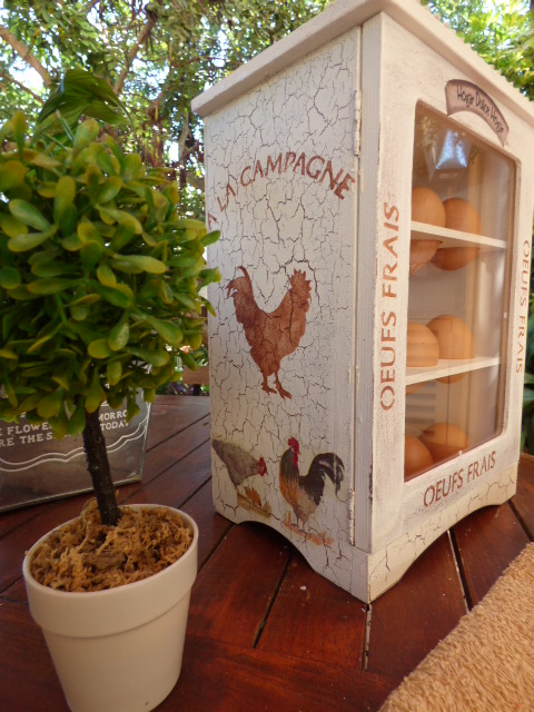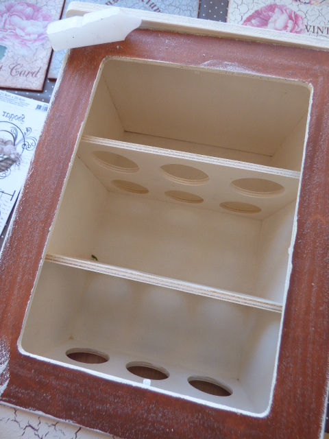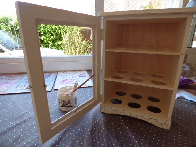 La puertecita en vez de craquelarla, le he hecho un decapado suave, pasando cera, luego pintando con la pintura clara y a continuación lijando todo muy suavemente