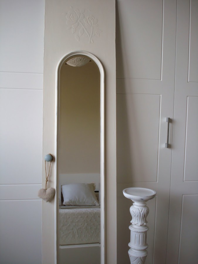 En la planta de arriba los armarios los hicimos a medida y ni se me ocurrió pedirle al carpintero que nos pusiera un espejo en los tres o por lo menos en alguno de ellos.