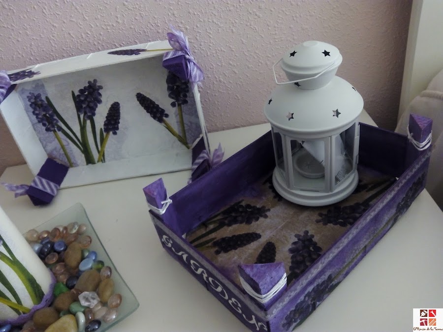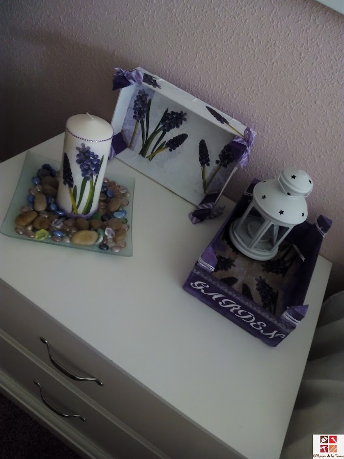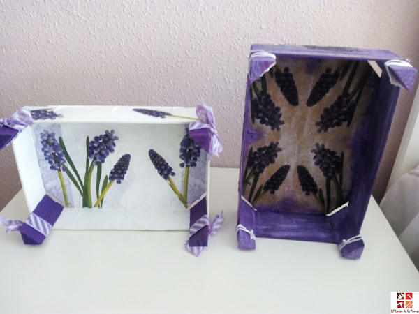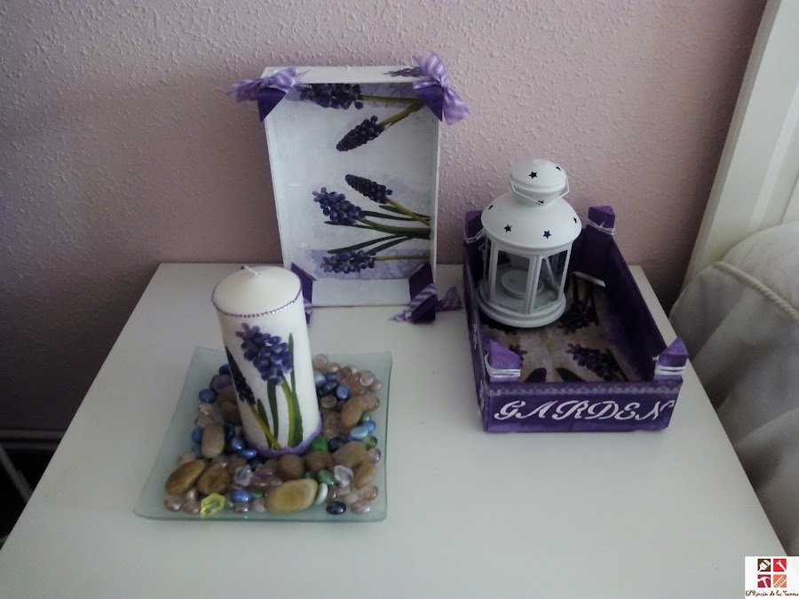 Por eso no he podido resistirme y participar en este reto y enseñaros dos cajas que hice para mi madre y ya que me puse....tuneé una vela que tenía muy sosa igual que las servilletas que utilicé en las cajas.