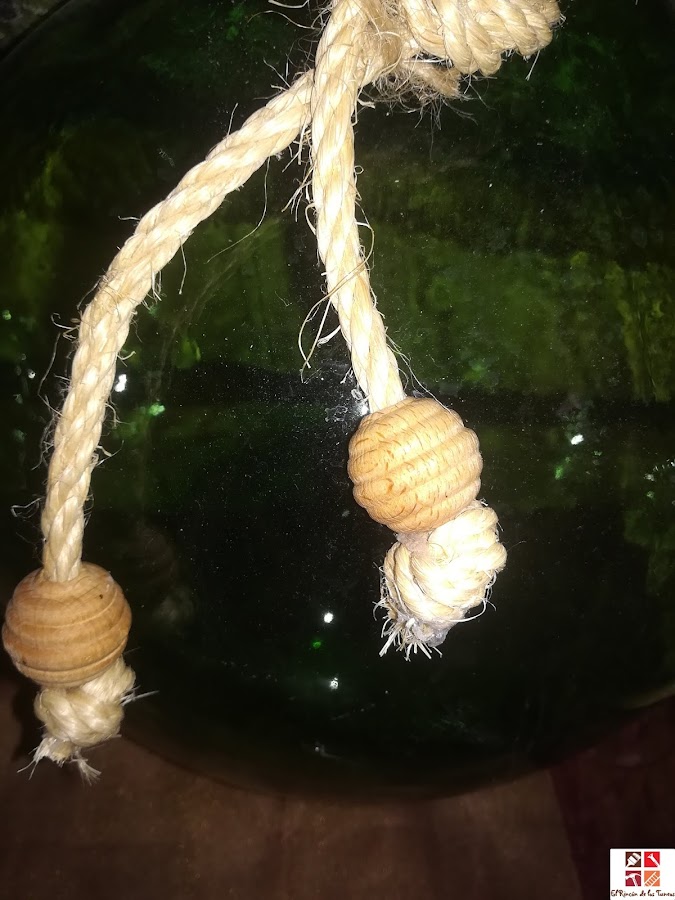 Cuerda gruesa de sisal con dos bolas de madera, simple pero muy decorativo.